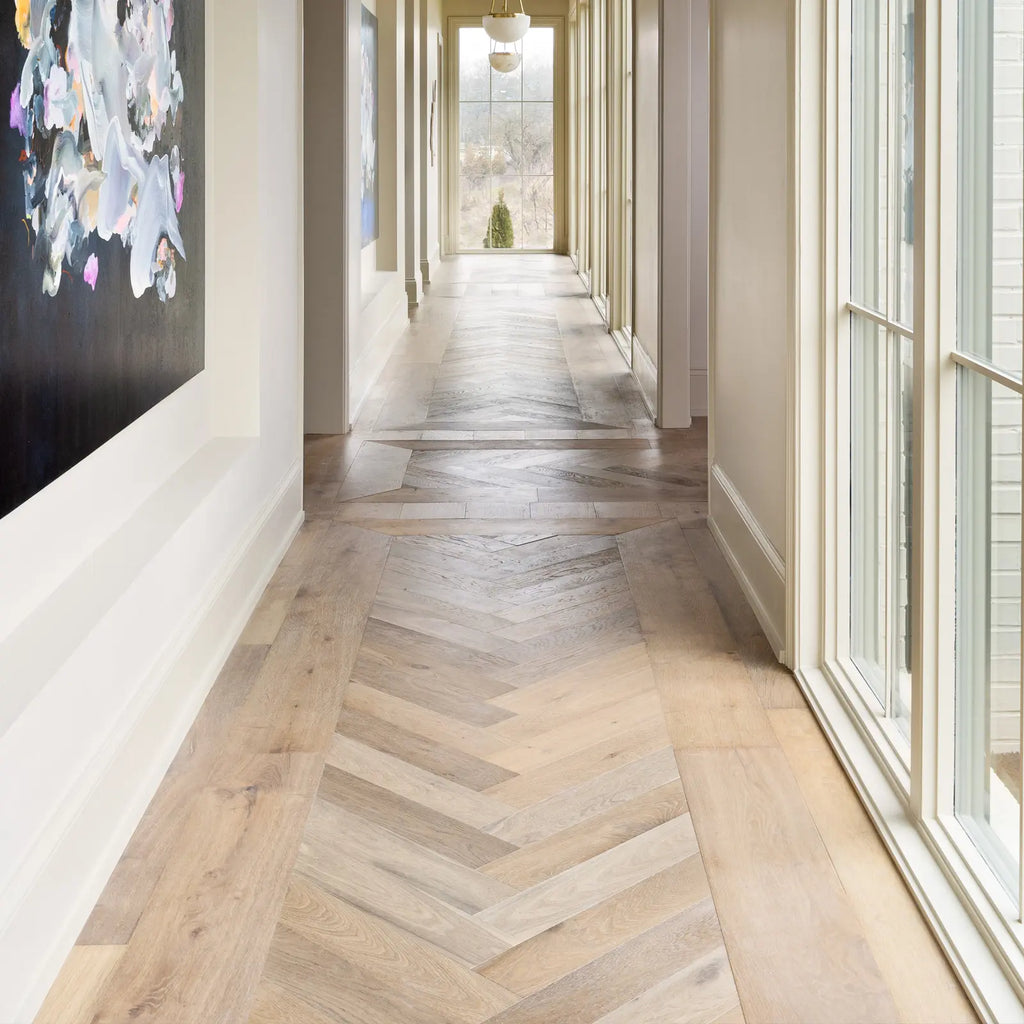 The Terra Herringbone Collection offers strong visual interest with the classic repetitions that the herringbone design provides. The carefully selected colors provide a range of tonal options. These colors reflect our aesthetic for wood floors that appear raw, natural, and aged in place, created by the elements of sun, wind, and time.