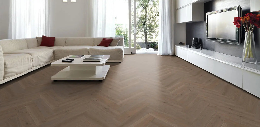 The Terra Herringbone Collection offers strong visual interest with the classic repetitions that the herringbone design provides. The carefully selected colors provide a range of tonal options. These colors reflect our aesthetic for wood floors that appear raw, natural, and aged in place, created by the elements of sun, wind, and time.