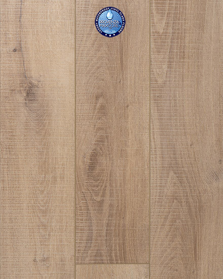 The Provenza MaxCore™ 100% Waterproof Moda Living Collection features a long plank, ribbed, realistic wood texture look with bevel edge effect.
