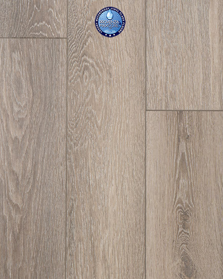 The Provenza MaxCore™ 100% Waterproof Moda Living Collection features a long plank, ribbed, realistic wood texture look with bevel edge effect.