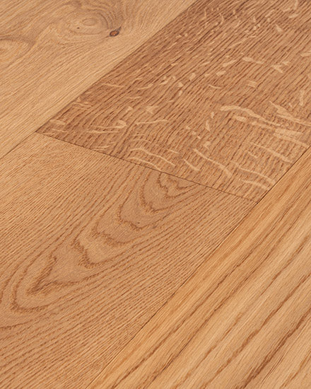 The Volterra Collection features a wire brush, hand scrape, open knots, cracks, and color variation in a light to rustic character evocative of a naturally aged, time-worn floor.