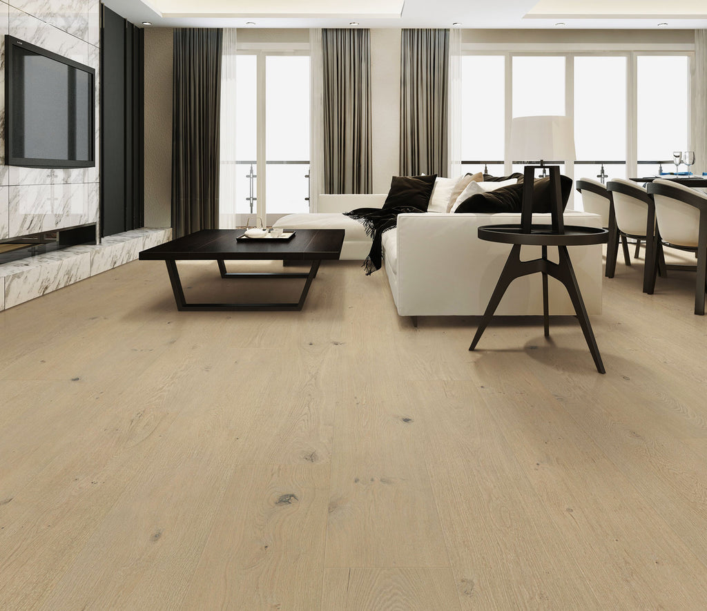 The new Vitali Elite Collection is an ultra-wide, long plank luxury European hardwood featuring a light wire brush, multi-layered stain with color variation, in a range of contemporary colors designed for a clean, modern interior visual.