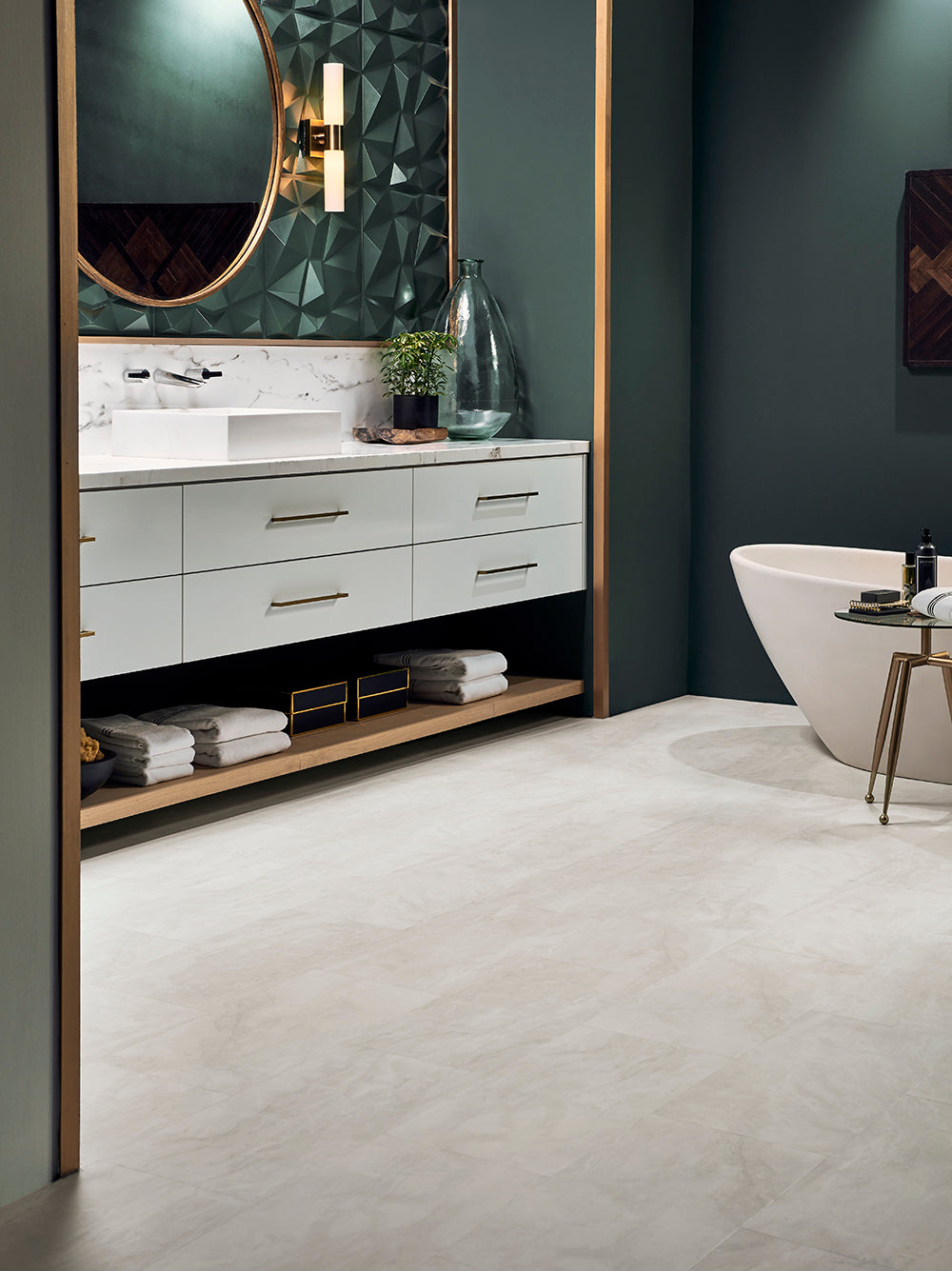 Capturing all the realism and authentic elegance found in honed marble, Vienna is a rare vision of beauty. Offered in both 18” x 18” and 12” x 24” tile formats, Vienna combines soft color variation with a smooth surface texture making it not only realistic, but easily versatile to provide a contemporary solution to any bathroom or kitchen.
