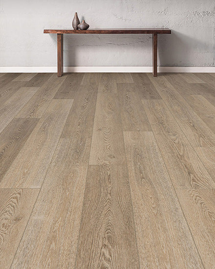 The Provenza MaxCore™ LVP Waterproof Concorde Oak Collection features an exclusive pattern in a ribbed, realistic wood texture with painted bevel edge effect.