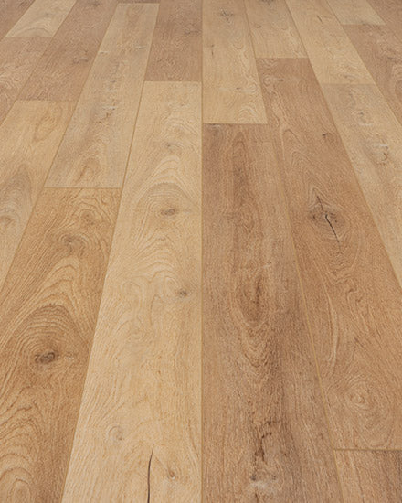 The Provenza MaxCore™ 100% Waterproof Moda Living Collection features a long plank, ribbed, realistic wood texture look with bevel edge effect.