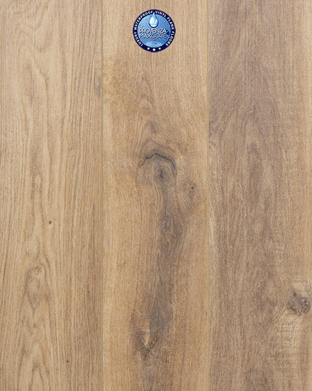 The Provenza MaxCore™ 100% Waterproof Moda Living Collection features a long plank, ribbed, realistic wood texture look with bevel edge effect.